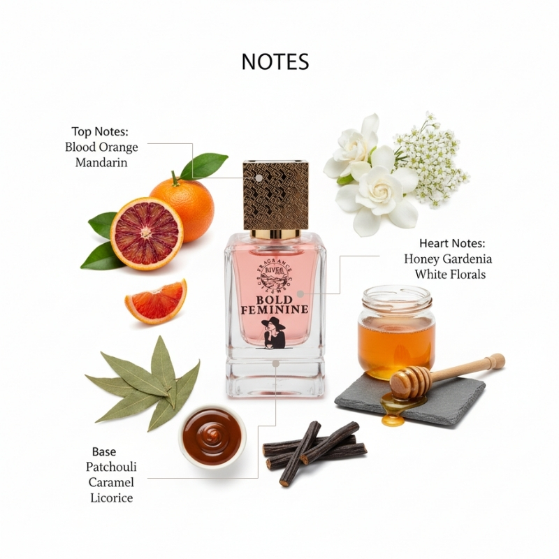A bright citrus opening introduces vibrant femininity, leading into a honeyed floral heart full of sensual sweetness. Patchouli and caramel in the base add warmth and depth, leaving a bold yet elegant signature.