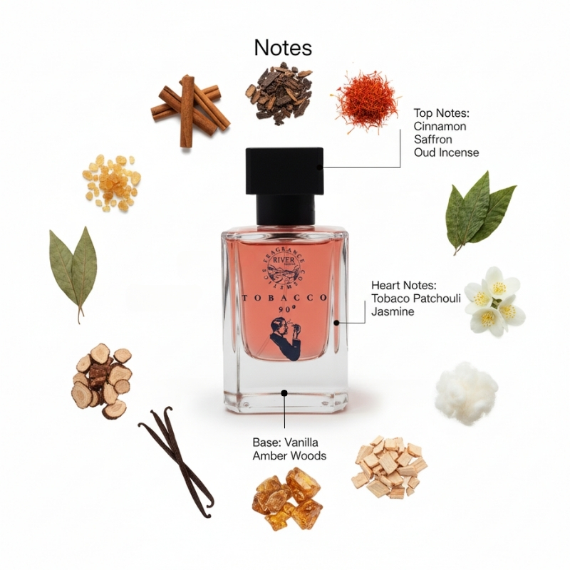 A bold opening of spices and oud commands attention instantly. The heart unveils rich tobacco and patchouli, building masculine depth, while vanilla, amber, and musk soften the intensity into a warm, addictive trail